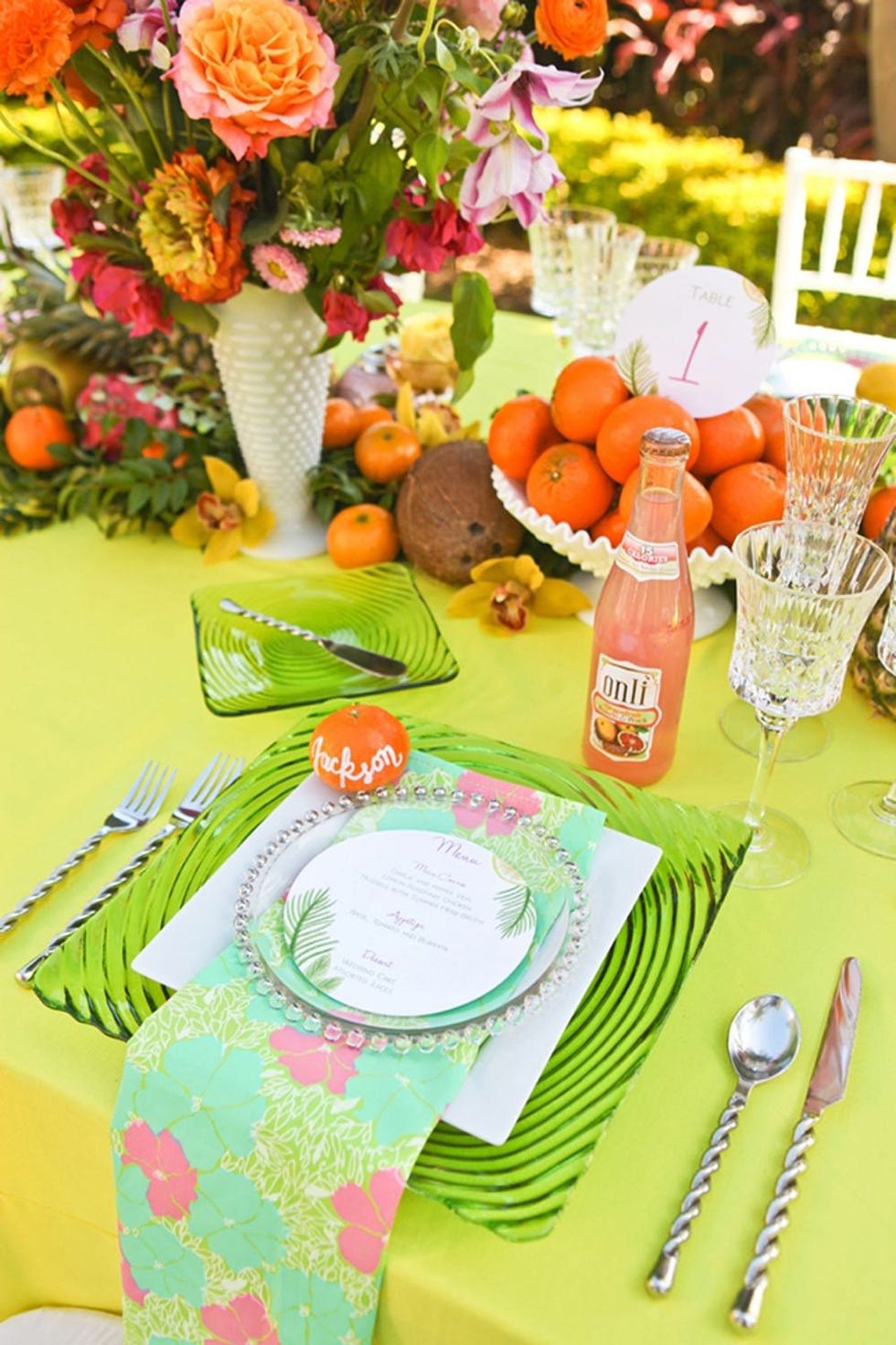 5. Lilly Pulitzer: Finally, an opportunity to use every single color of tableware you have. Pink cutlery? Do it. Funky florals? You better be using those. Oh, and don’t forget the bold and punchy citrus. Slowly but surely, you’ll be able to pull together a playful party full of pattern-heavy shift dresses. (via Krystal Zaskey Photography / Every Last Detail)