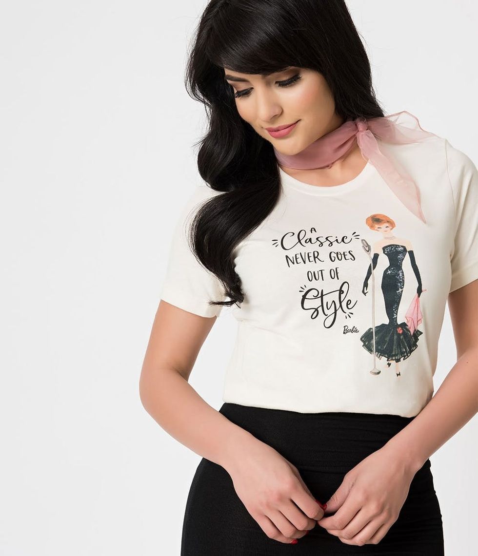 If Sephora’s new Barbie pink makeup collection has you wishing you lived overseas, prepare to freak out: There’s a brand new Barbie collab up for grabs, and it just may be the best one yet! Unique Vintage has just teamed up with the most stylish doll of our youth for an apparel and accessory collection that pays homage to some of her most iconic retro looks. You may recall her Solo in the Spotlight gown or her 1950s Suburban Shopper look, both of which fall into the line’s $22 to $210 price range. Check out the collection of regular and plus-size garments here, then head to Unique Vintage to shop it in full.