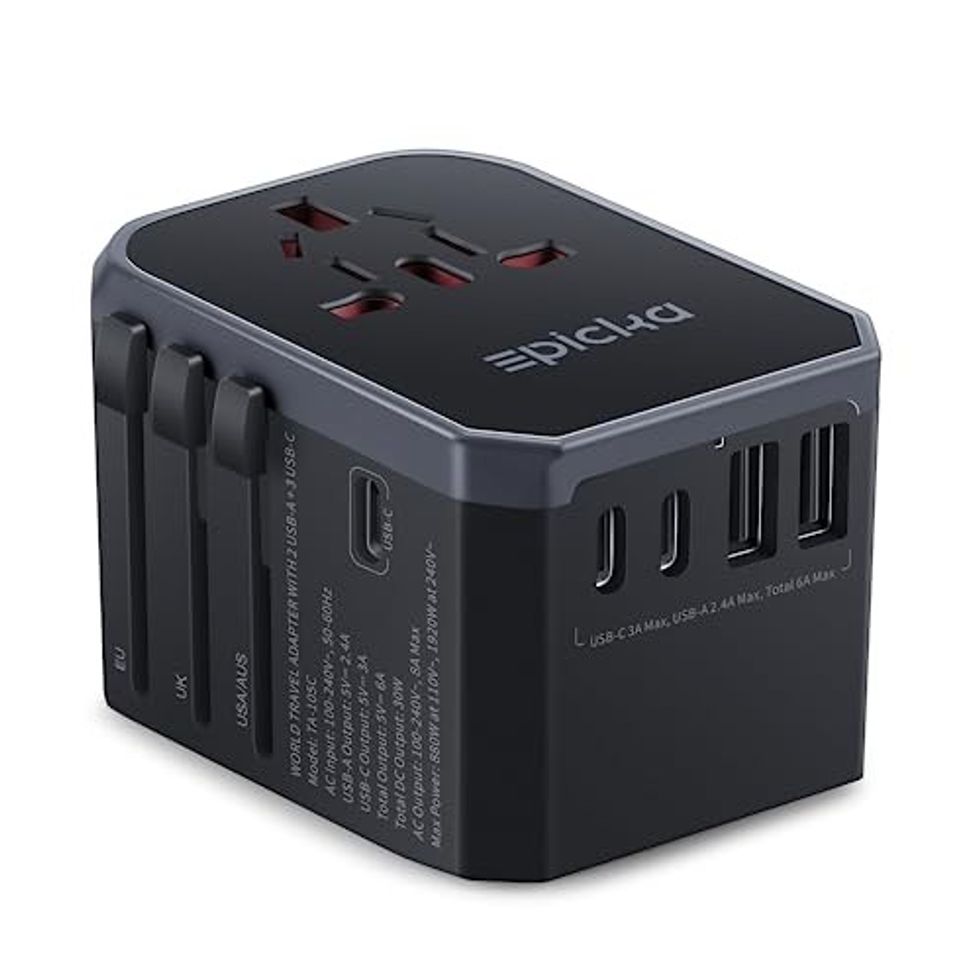 EPICKA's Wall Charger is equipped with 4 plug types--Type C, Type G, Type I, and Type A. With the Universal Travel Adapter 6 devices can be charged at the same time. It is not compatible with use in India and South Africa.
