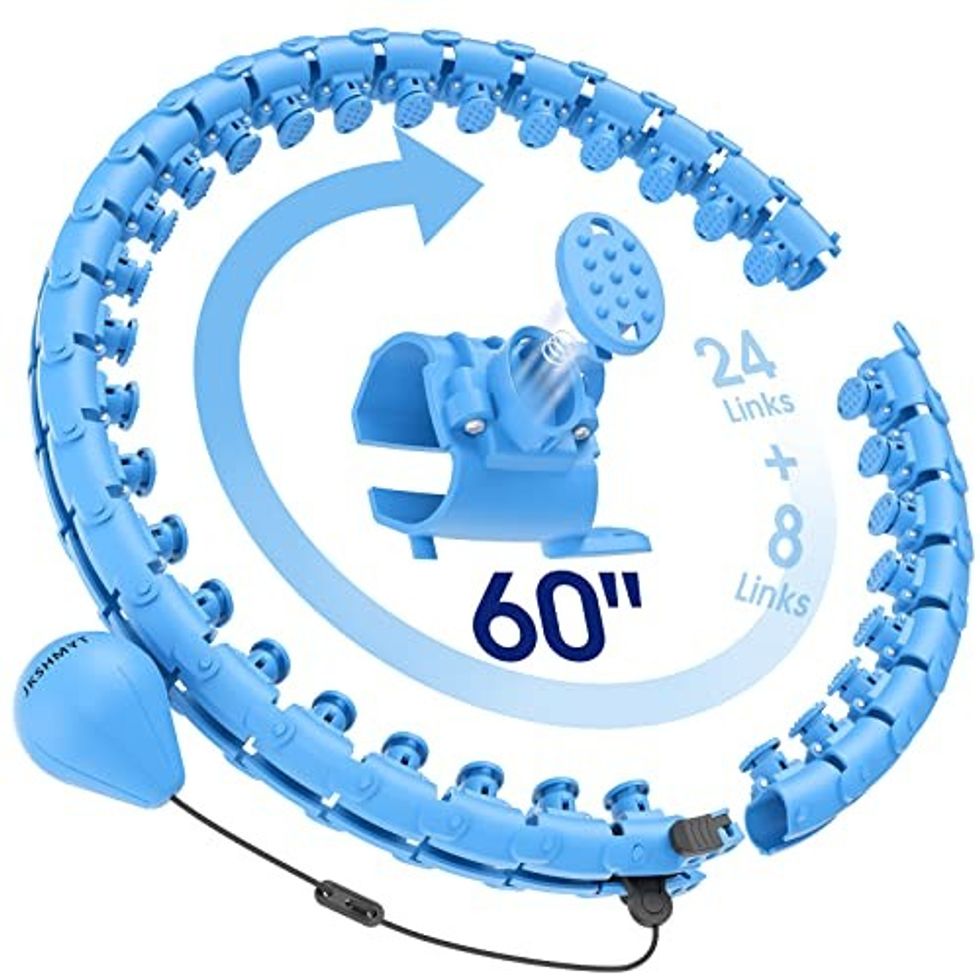 The Fit Hoop has 32 links with massage points that can be detached as your waist gets smaller. The Exercise Hoop has a 1.1-pound detachable adjustment weight. "When the gravity ball rotates, it produces centrifugal force much larger than its weight to achieve better exercise results."