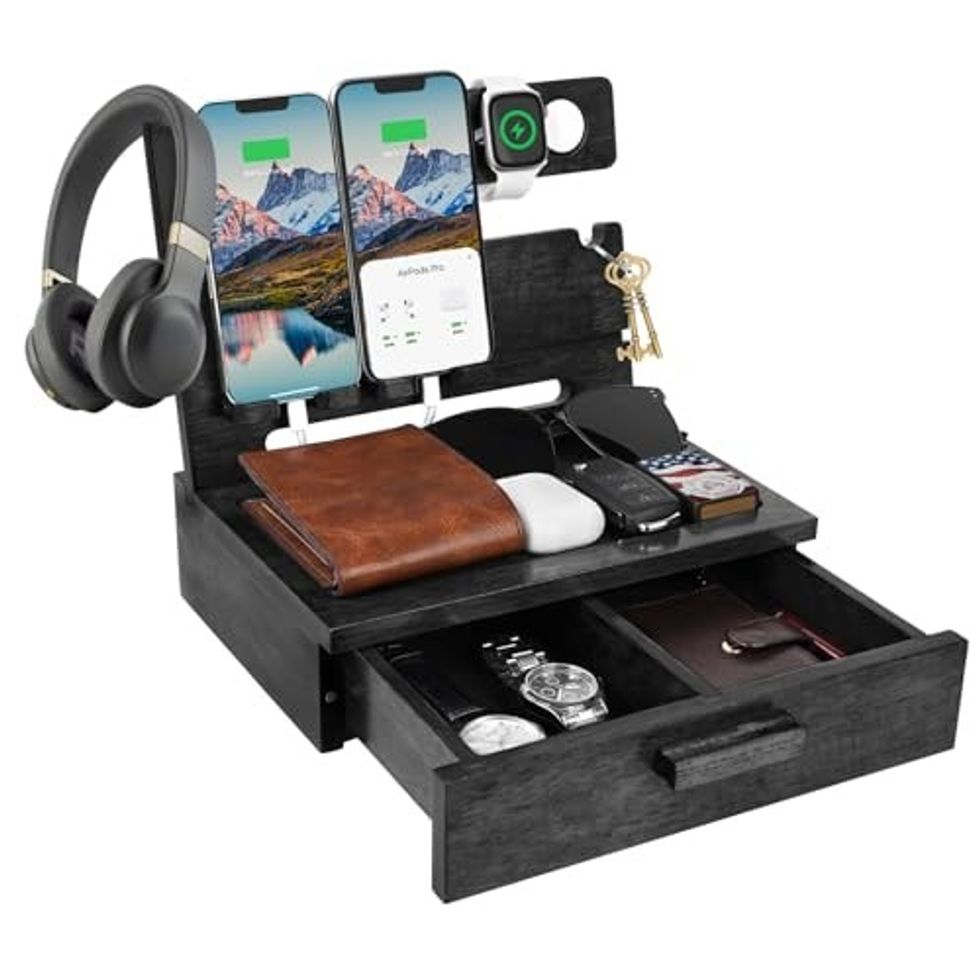 Get everything charged from the wood docking station and see how it helps. This is an excellent gift for that person with many items, from phones to computers to headphones and other little things.