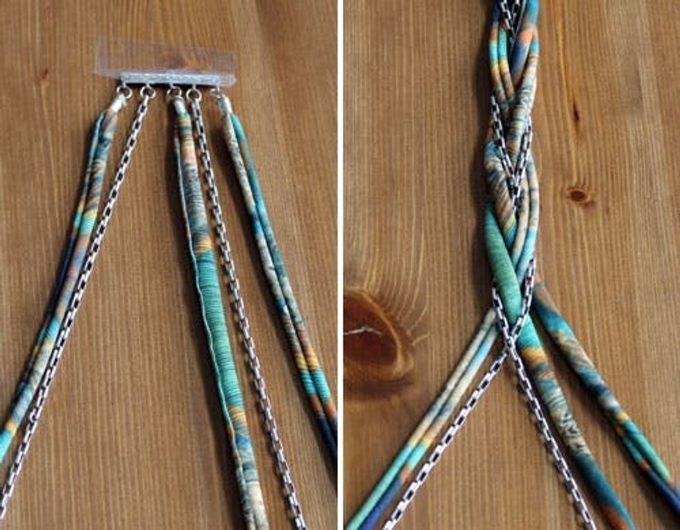 Not the braided fabric around the key rings, and you're almost done. The last step is to add your chain and clasp. Use the same methods as above, and measure around yourself.