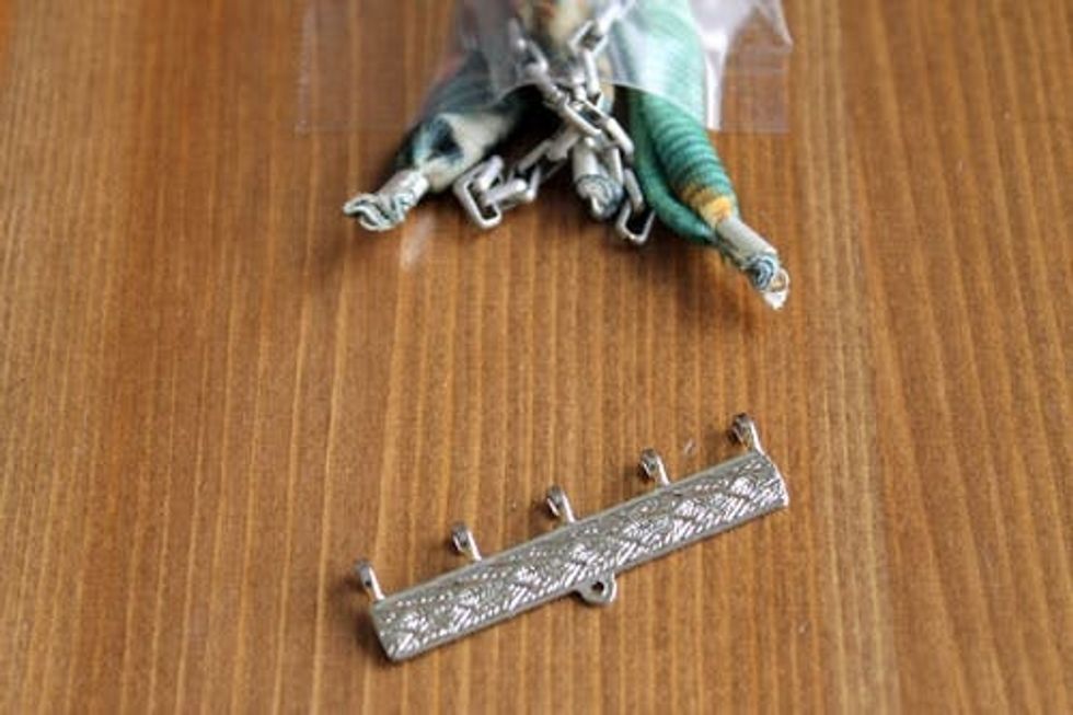 Attach the 10 inch section to the 8 inch section with two small sections of chain.