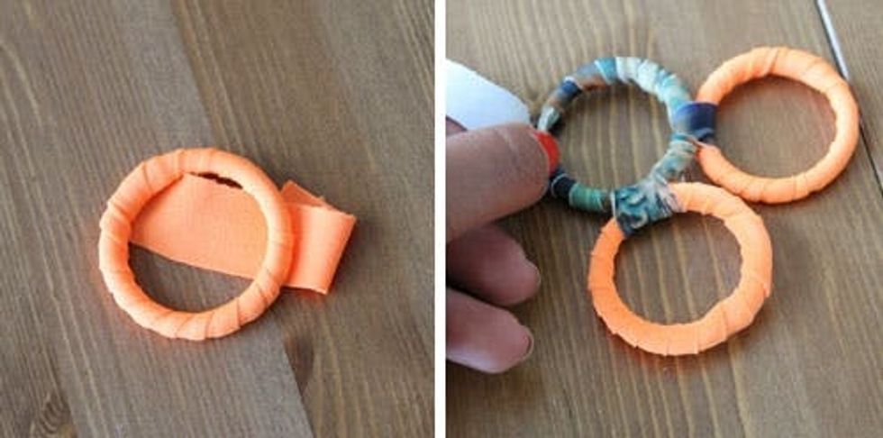 Last week we showed you how to turn any yard of fabric into a chic beach wrap. But what about those scraps of fabric that aren't quite big enough to cover your bod? Pieces of t-shirts you've shortened, scraps from Halloween costume projects, even shoelaces are fair game for this DIY.