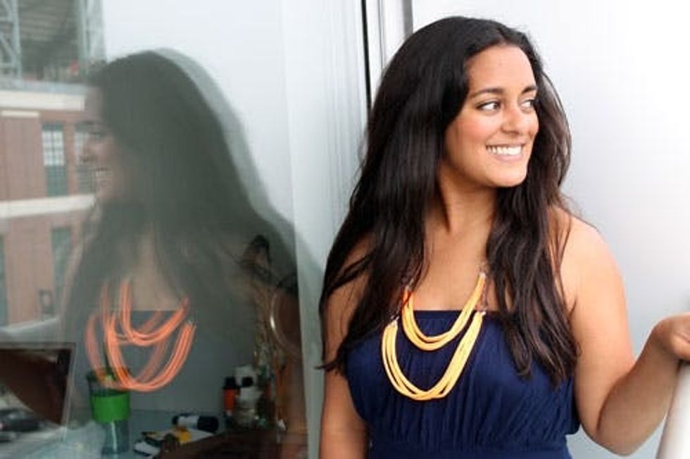 We had a handful of leftover fabric scraps from our beach wraps, so we teamed up with Brit Resident Stylist Misty Spinney to come up with a trio of fashion-forward necklaces.