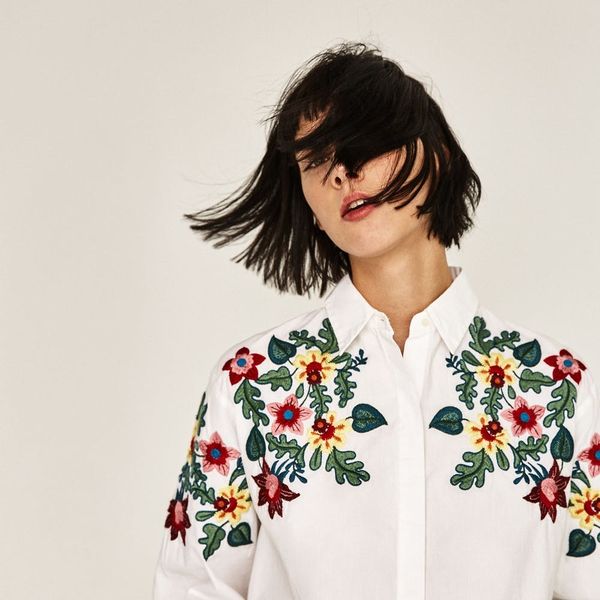 2. Zara Oversized Floral Shirt ($50): No more blasé button downs for you! It is, indeed, possible to branch out while still sticking to your nine-to-five’s strict dress code, and this botanical number is proof. The bright embroidery adds major pep to any working-girl look, and will look downright DDG styled alongside black culottes, ankle boots and sophisticated drop earrings.