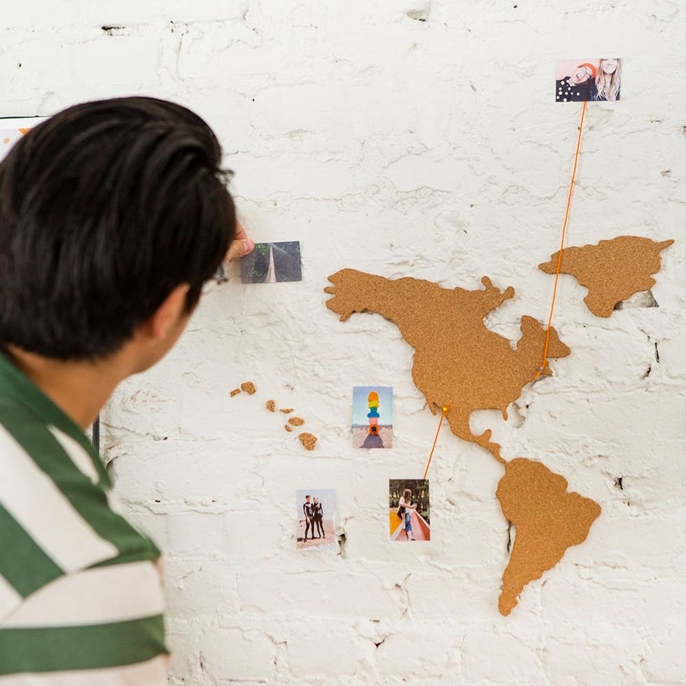 Another year, another Valentine’s Day, another box of chocolates, another bouquet of red roses, another reservation at a crowded restaurant, another… actually, scratch that. We’ve doctored up a way better V-Day game plan for you with our pals at HP. Together we have come up with the perfect gift for your S.O., AKA your treasured travel buddy. Skip the clichés and give the gift that keeps on giving: a night in reliving your favorite adventures you’ve been on together. All you’ll need is your HP Sprocket, the most perfectly portable pocket printer with seamless bluetooth connectivity, and a world map (we went with cork, *tres chic*). With the help of your HP Sprocket, you two can spend a relaxing evening perusing, choosing, and printing your number-one photos. Then you’ll remember the journey as you pin all the places you two have been on a world map.