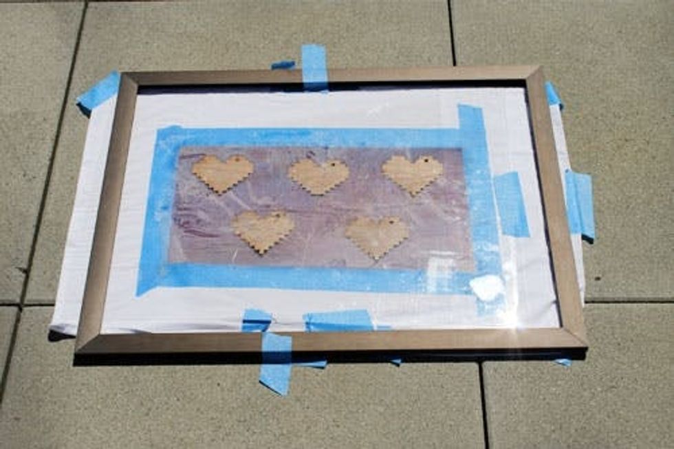 Place felt letters and stars under plexiglas, and let sit in the sun for 15 minutes.