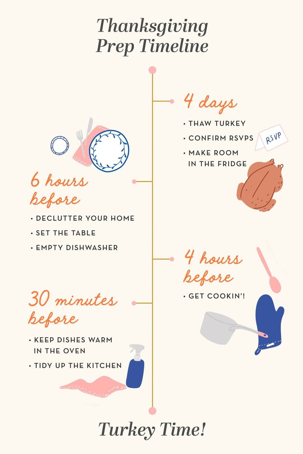 4. Start prep four days before the party. Follow this handy timeline for a successfully stress-free soirée. By limiting the last-minute scramble, the event will feel much more approachable. Plus, that bird needs time to thaw in the fridge!