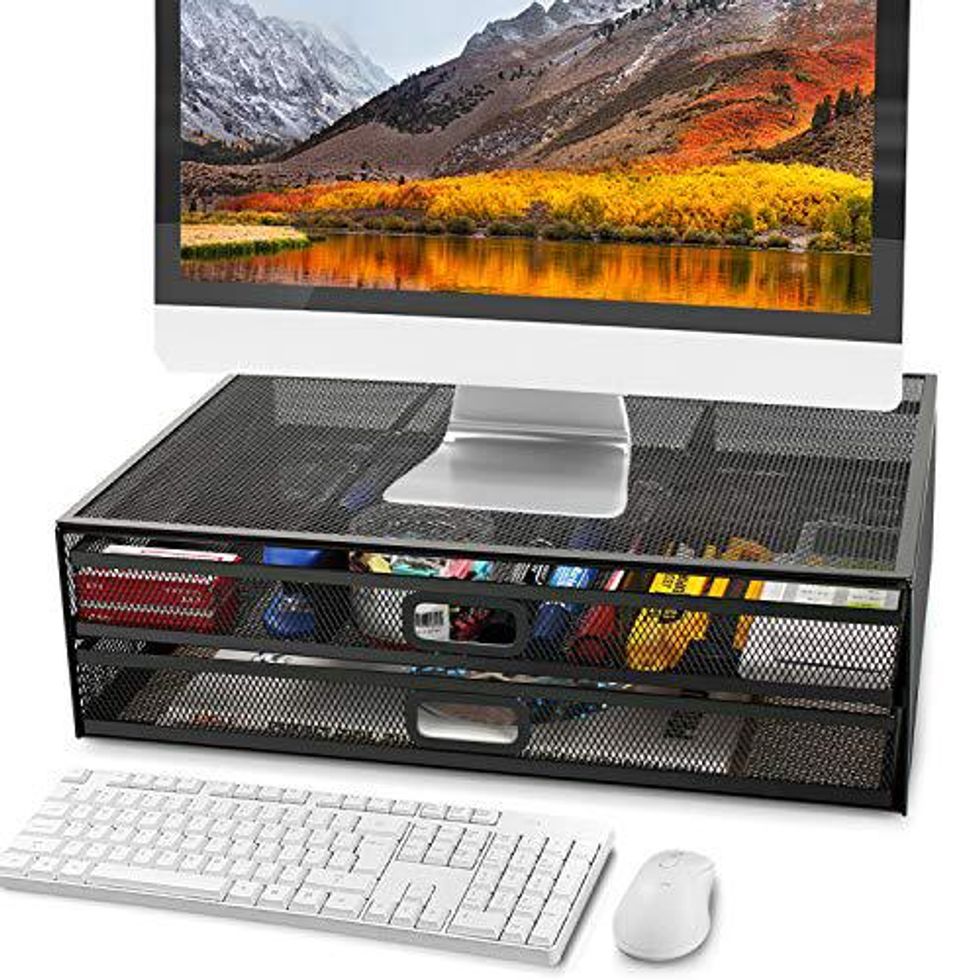 Don't deal with messy pens and papers all over you desk anymore. This monitor stand comes with drawers to help you organize all those pesky items that end up collecting on your desk. This is also super helpful if you are a person who uses both a laptop and a monitor for double screen working.