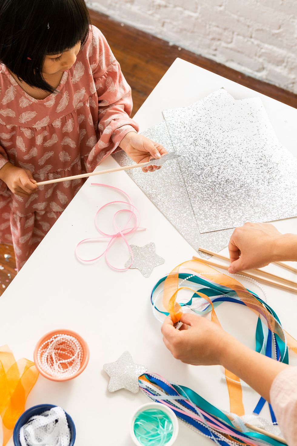 Make flower crowns from a Valentine's bouquet, make a cute DIY mailbox for all of the cards they scored at school, or make ribbon wands with glittery hearts instead of stars.