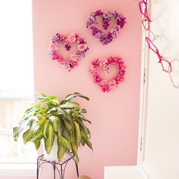 These floral heart wreaths are a chic and subtle way to decorate your home for the holiday. This tutorial calls for fake flowers, but using the real thing has the added bonus of filling your home with beautiful scents. (via Design Improvised)