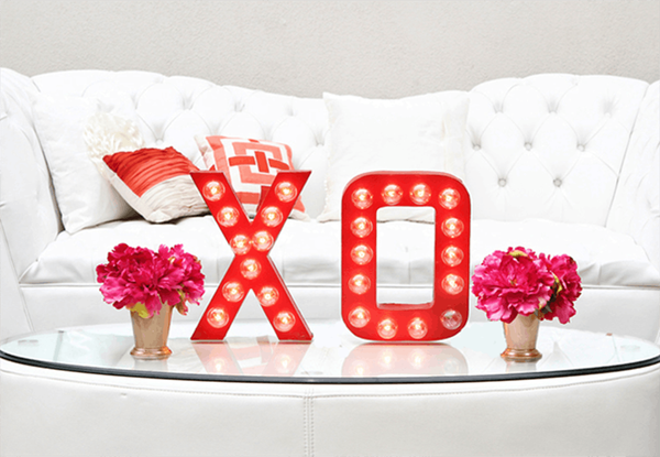 18. XO Marquee Sign: This is a great way to light up that romantic date night. We suggest turning off all of the lights and just using this to light up your space. It’s sure to make it a relaxing and romantic evening. (via Kristi Murphy)