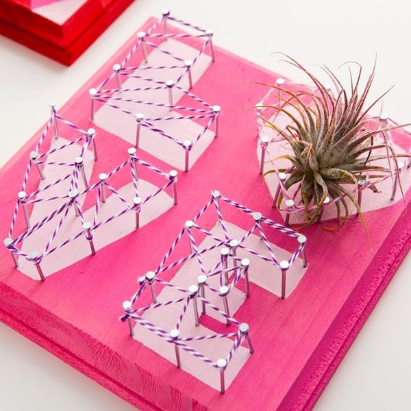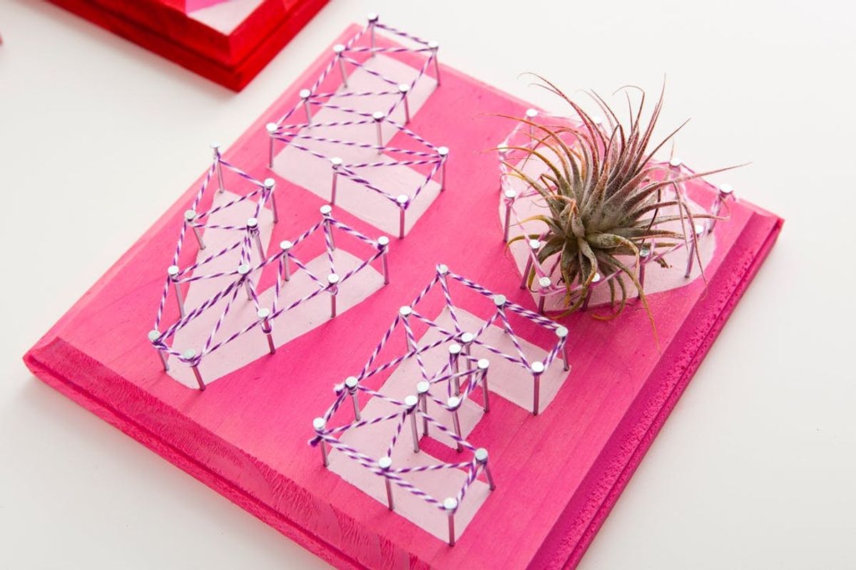 There is no way to hide that nail string art is one of our favorite DIY Basics here at Brit + Co. We decided to revisit the Living Wall Art DIY and revamp it for Valentine’s Day. With a few basic steps you can create living wall decor to decorate your space for February. But guess what’s even cooler? We’ve kitted everything you need to make your own Valentine’s Air Plant Nail Art in the form of a Brit Kit — just $24.99 in the shop.