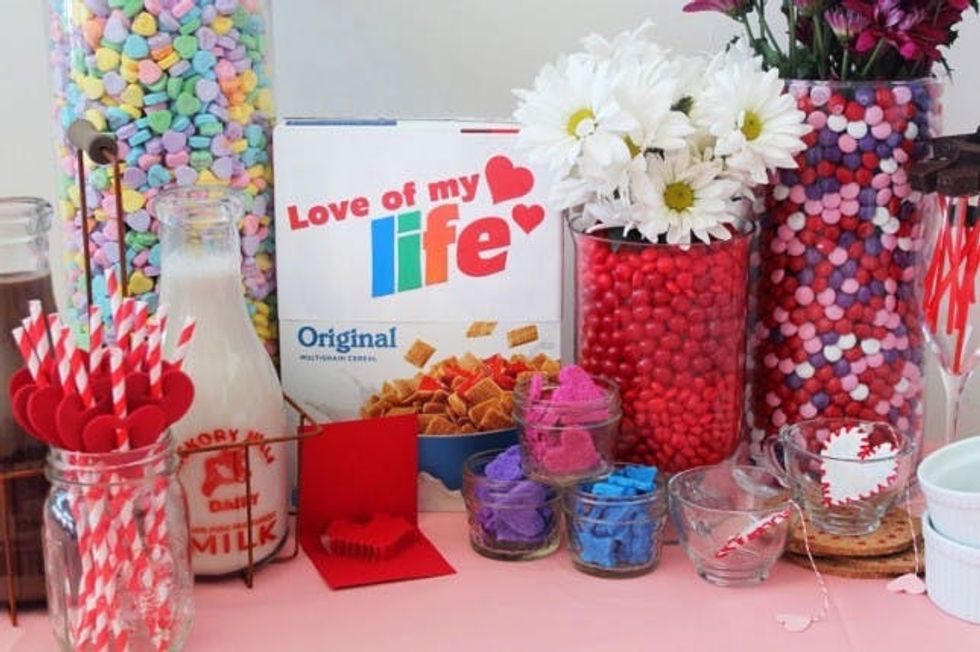 First, you gotta give your Valentine something to eat! Come up with a punny play on your favorite cereal (Honey Bunches of Oats, Lucky Charms) or steal ours by downloading this colorful template.