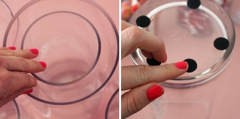 To make sure the smaller vase doesn’t slide around in the large one, use Velcro Brand tape to keep things in place.