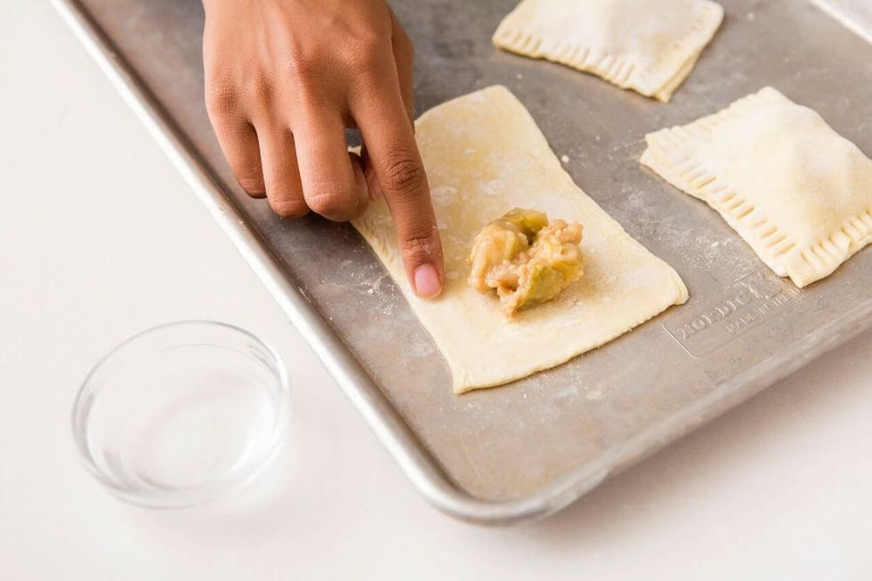 7. To seal the puff pastry, dip your finger in water and brush it around the edges of your pastry.