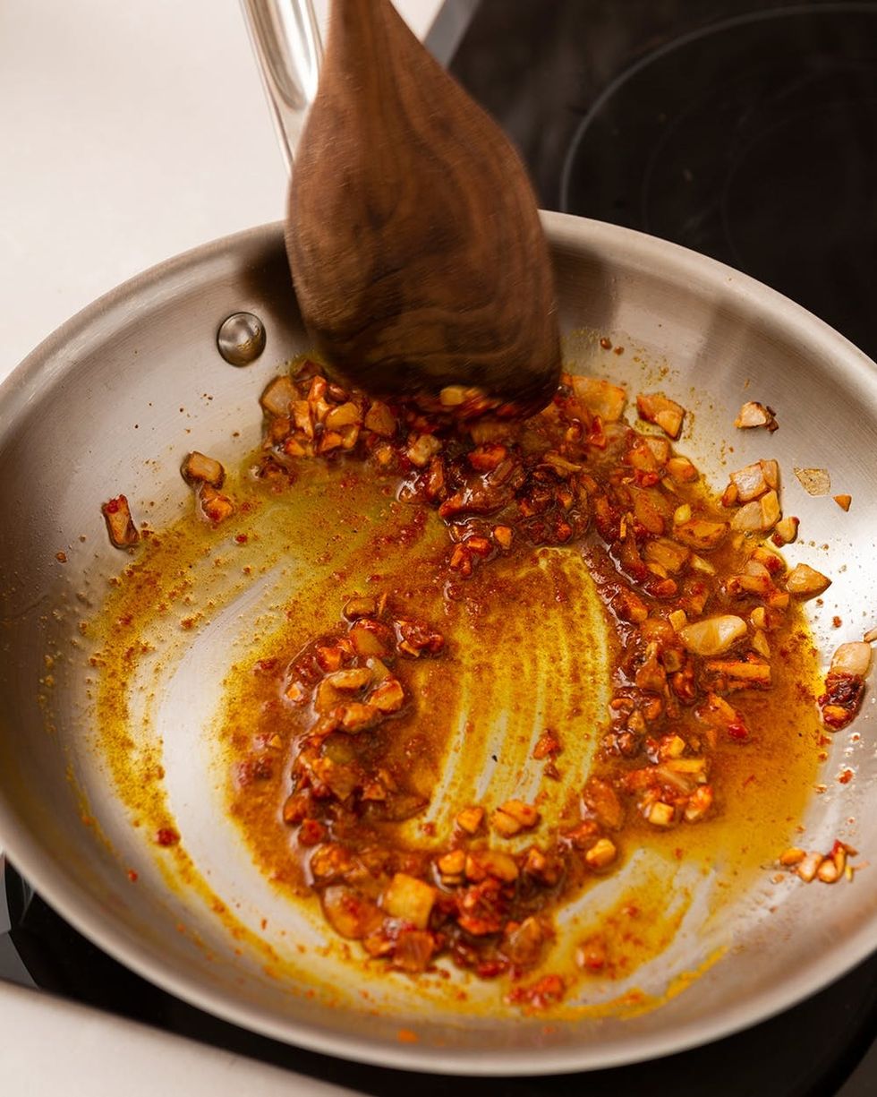 1. In a small saucepan, heat the coconut oil over medium-high heat. Add the shallots and garlic and let sauté for about 5 minutes, stirring frequently.