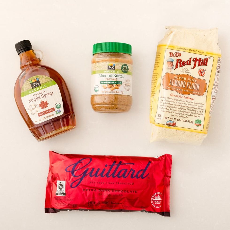- In a large bowl, combine the almond butter and honey or maple syrup. Add the nut flour and mix until a ball of dough forms. Mix in vanilla powder (optional). Add the chocolate chips.