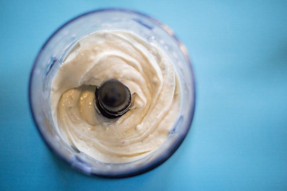 2. Blend your frozen banana slices and 1/3 cup almond milk until the mixture is creamy and smooth. If you like your milkshakes a little more liquid-y, you can add more almond milk, but we prefer ours pretty thick.