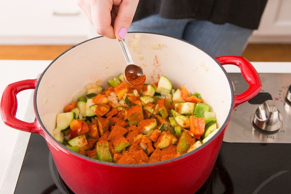 Time to add the spice! Add cumin, paprika, cayenne, salt and pepper. Stir to combine.