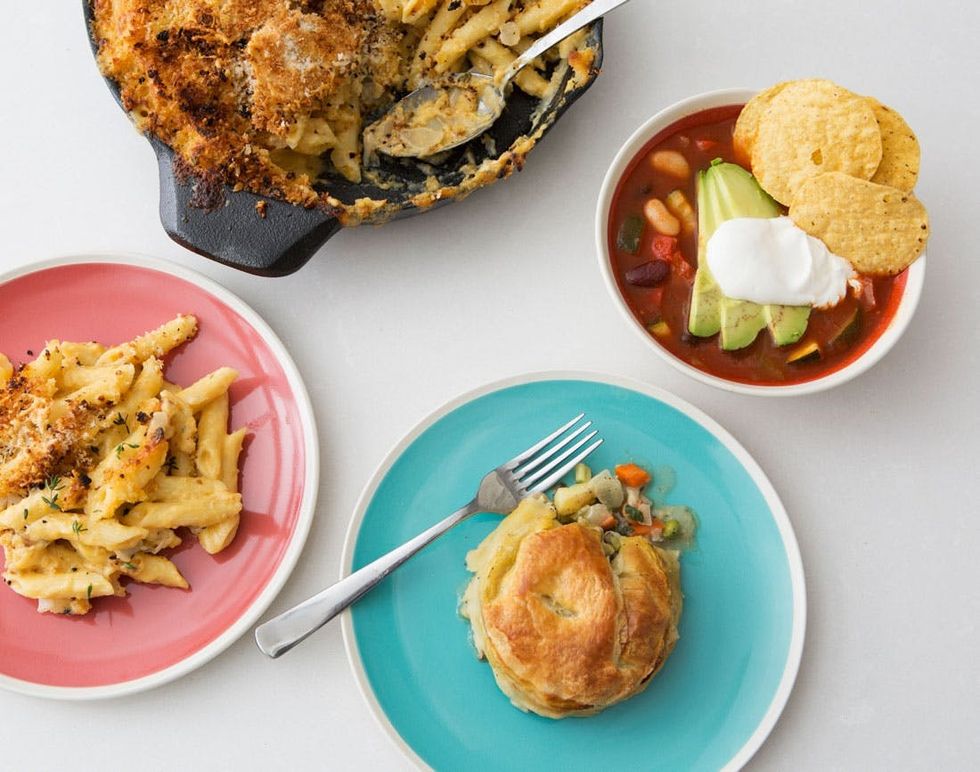 This menu includes four vegetarian takes on our favorite comfort foods. And guess what? They’re all super easy to make and re-bake.