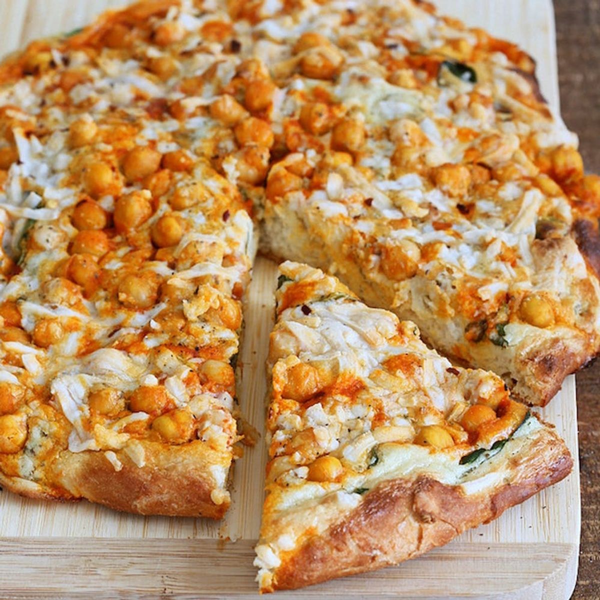 2. Buffalo Chickpea Pizza With White Garlic Sauce: This completely vegan pizza is topped with chickpeas and drizzled with white garlic sauce and celery “ranch.” If you’re 100% vegan and concerned about the Buffalo sauce, don’t be — the name comes from the sauce’s origins (Buffalo, New York), NOT the animal. (via Vegan Richa)