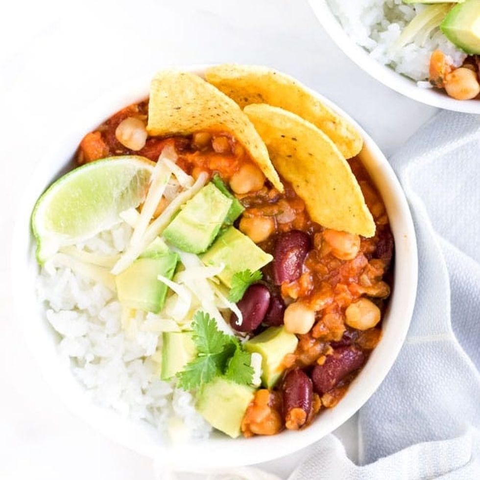 There are plenty of ways to customize this hearty, veggie-packed chili recipe, making it fun for the whole family! Serve it with rice, quinoa, couscous or corn bread, and let everyone pick their own toppings table-side, like diced avocado, corn, grated cheddar, sour cream, corn chips and salsa. (via Healthy Little Foodies)
