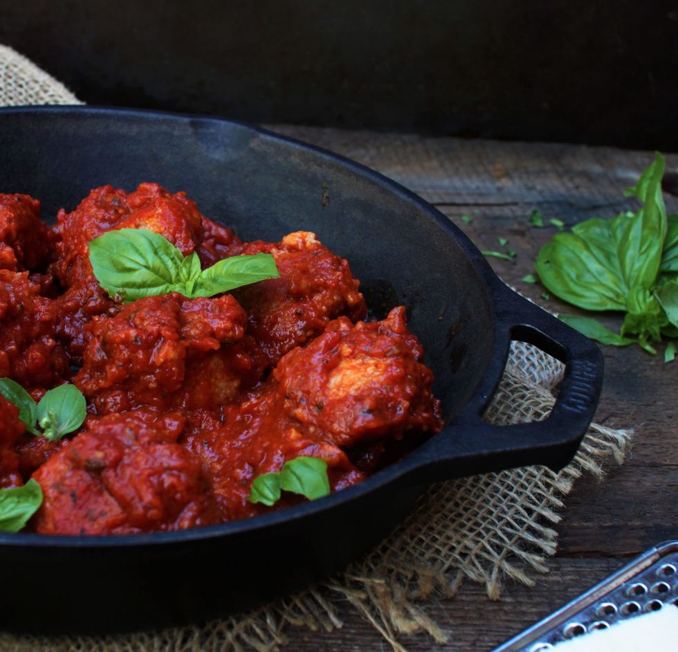 Instead of the beans and nuts featured in most vegetarian meatball recipes, these tasty morsels are made with cauliflower and rice. Seasoned with plenty of garlic, onion, oregano, paprika and basil and drenched in marinara sauce, they're perfect over a plate of spaghetti or tucked inside a French role with melted cheese. (via Sneaky Mommies)