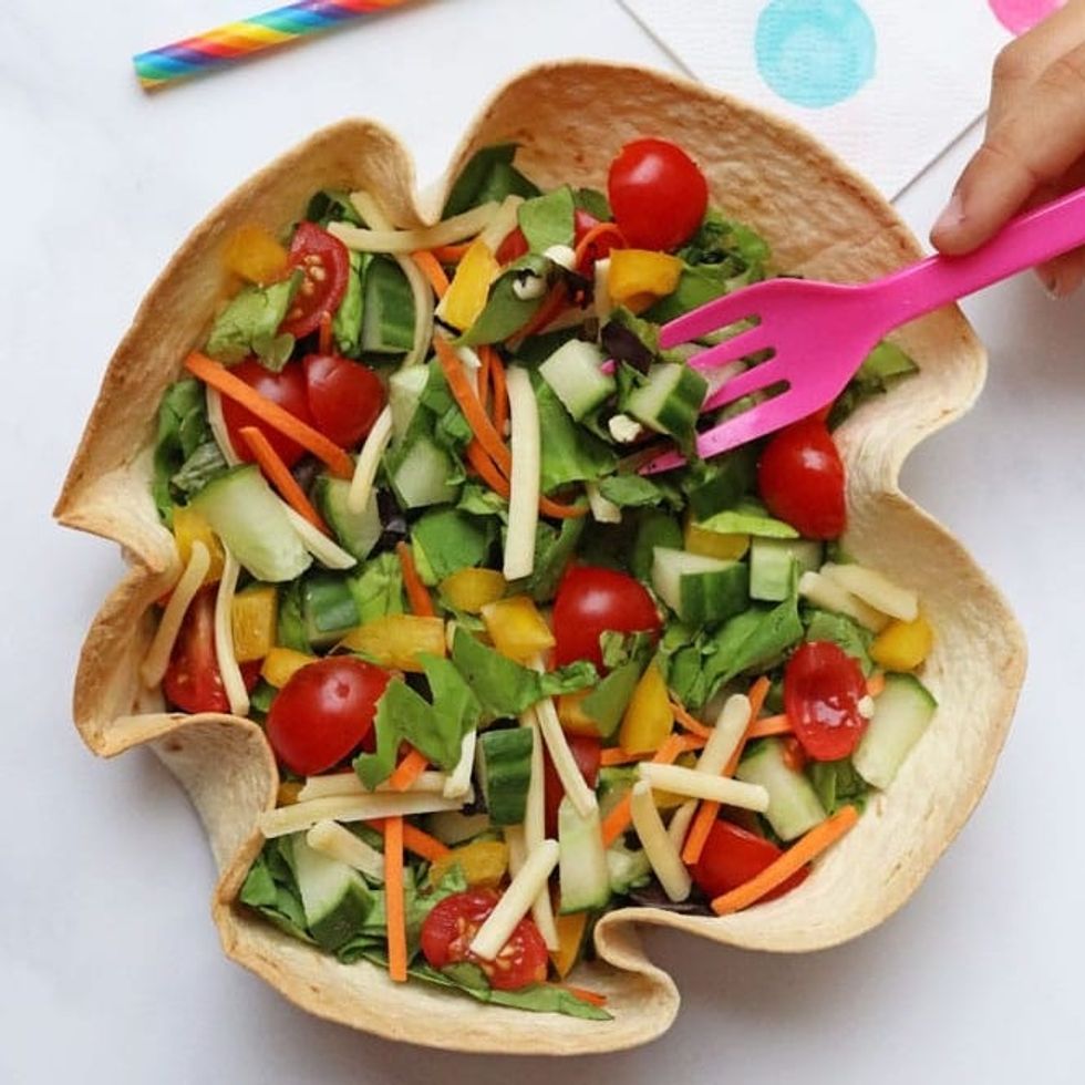 These edible vessels make salad — topped with your child's favorite dressing and veggies — so much more fun to eat. Use them for burrito bowls too! (via My Fussy Eater)