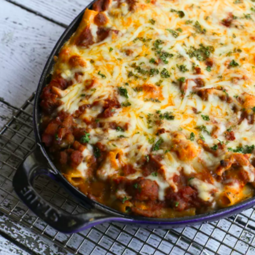 Add roasted or sautéed veggies to this simple pasta bake for a hearty vegetarian meal that's sure to become a family favorite. (via The Spruce Eats)