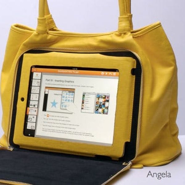 Essentially, they've taken a sleek iPad case and attached it to a matching handbag. While this combo seems ripe for a little DIY action, why DIY when it's already so well done by Versetta? Each bag has a front pocket for your iPad. Slip it in, and either unzip or unbutton the front flap to easily access your calendar, email, browser, etc.