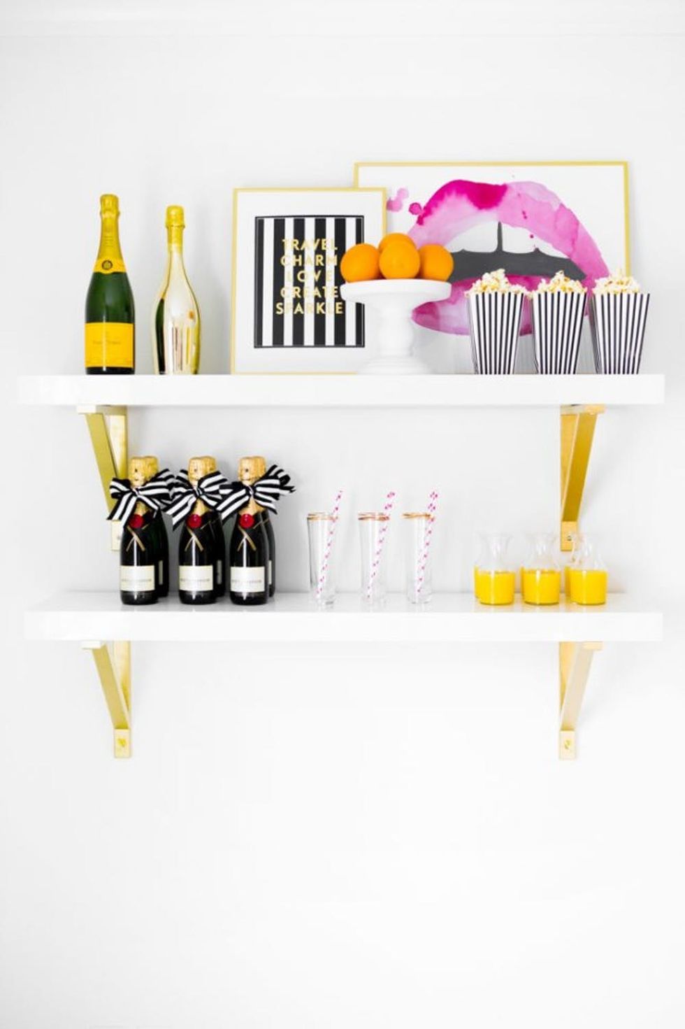 Once you’ve selected a shelf-like apparatus for creating your space, it’s time to deck it out with the essentials. Display your liquor and wine bottles (obviously) alongside sparkly glassware, an ice bucket, some fresh fruit (especially garnishes and lemons and limes for a twist!)… Some table books about cocktail-making and wines would also add a nice touch.
