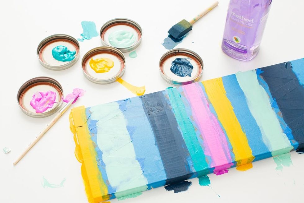 Start painting! We used five different colors and painted them in a repeating pattern.
