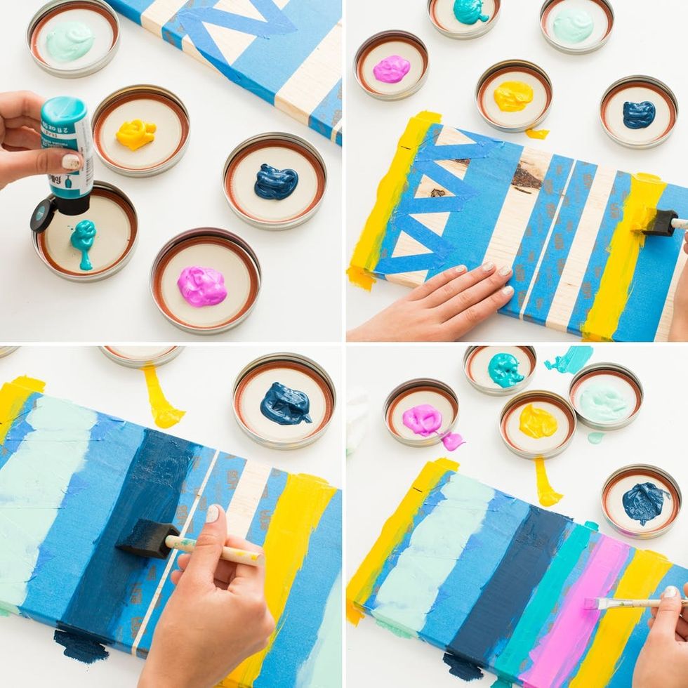 2. Paint and let dry. Wait about an hour before peeling off the tape.