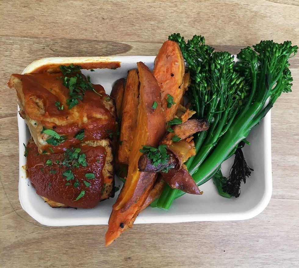 Since the entire menu is gluten-free, there’s no filler like breadcrumbs in the meatloaf. It’s simply organic ground turkey, carrots, celery, and onions. Despite its simple ingredients, it’s moist, flavor-packed, and filling. The apple glaze delivers just the amount of sweetness to the dish without being too overpowering. The sweet potato wedges and broccolini complement this dish well, making this meal incredibly satisfying and also easy to take home to reheat later.