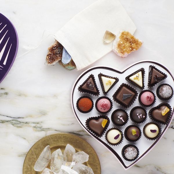The Cosmic Heart Truffle Collection With Crystal Pairing ($115) features a velveteen box filled with 17 limited-edition chocolate bonbons made with the rarest and highest-quality nuts, spices, and chocolates. (Two truffles are enrobed in naturally pink ruby chocolate!) Only three chocolate makers in the U.S. have been selected to use the scarce, berry-flavored chocolate, and Vosges is one of them.