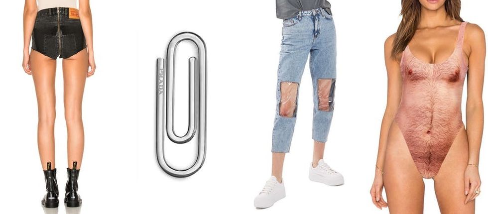 Vetements x Levis Denim Hotpants: The avant garde brand teased these shorts on their Instagram in April 2017. They certainly leave little to the imagination — and we mean little! These jeans unzip all the way up the back! (Photo via Forward by Elyse Walker)