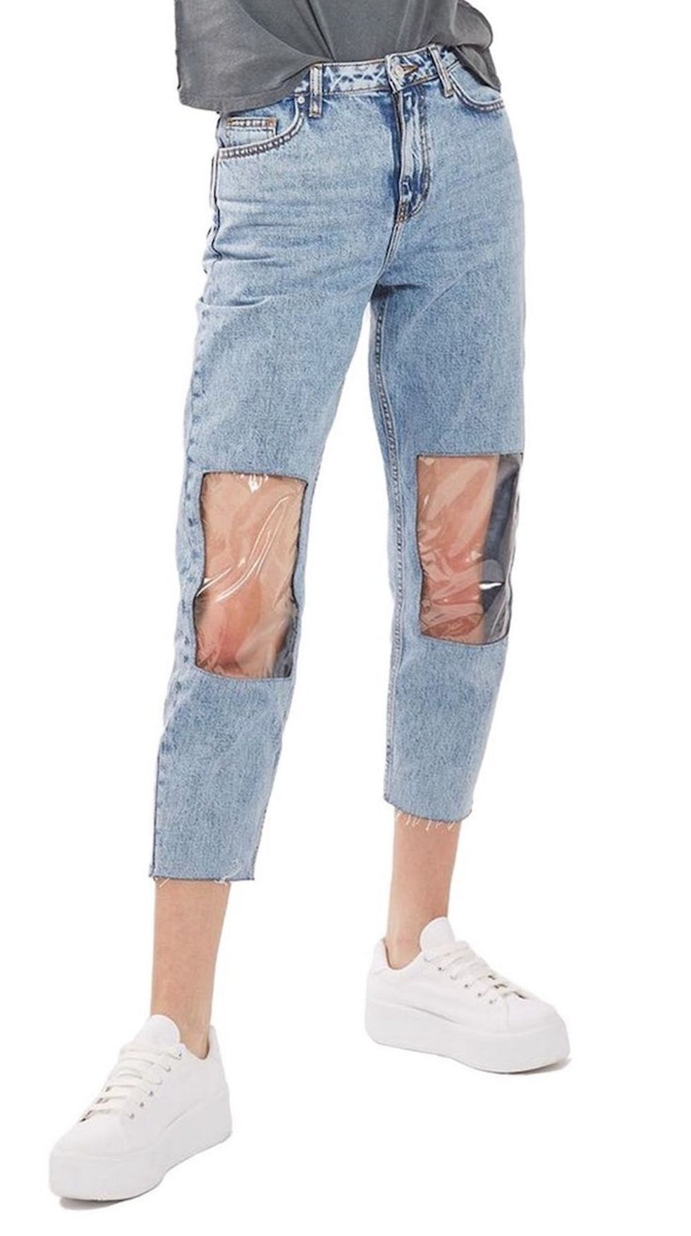 Topshop Clear Moto Jeans: Real question. What do you wear underneath these clear Topshop pants? The retailer debuted these bottoms in April, just one month after their Clear Knee Jeans. (Photo via Topshop)