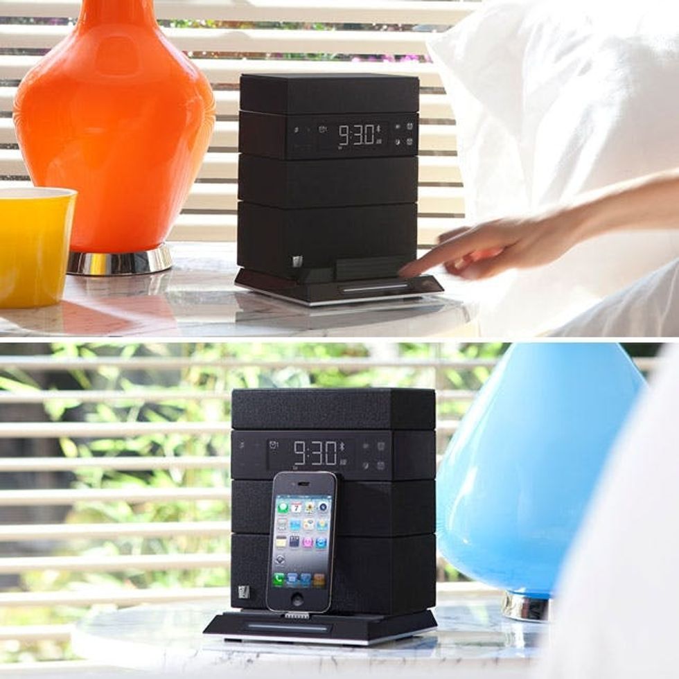 1. Sound Rise ($100): First up is the Sound Rise. This alarm clock debuted earlier this year at CES and is pretty darn cool. The upright design means it takes up less room on your nightstand while still filling the room with rich sound. It includes a dock for iPod, iPhone & iPad as well as a USB power port to keep all of your devices recharged in the morning. And, of course, you can stream wirelessly via Bluetooth. The alarm clock lets you wake up to music, radio, or an alarm chime with gradually increasing volume.