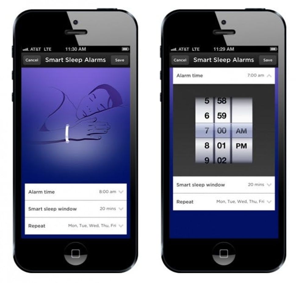 Set the alarm to whatever time you need to wake up by, define a window of time before your alarm time that you’re willing to wake up (10-30 minutes), and the UP band will vibrate at your lightest moment of sleep within that time frame. So smart!