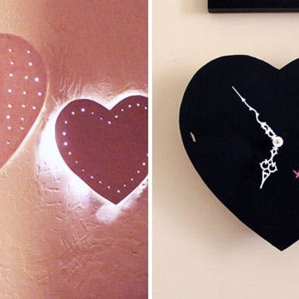 Our hearts are on fire here at Brit HQ, and we can’t get enough of the Valentine’s Day spirit. Earlier this morning, Brit showed the folks at the Today Show how to create 6 heartfelt last minute gifts, and we’re here with a couple more tricks for love-ly home decor. Hearts on the wall! We used heart-shaped cardboard boxes to create a pair of Lite Brite Hearts as well as a simple, chic Chalkboard Clock.