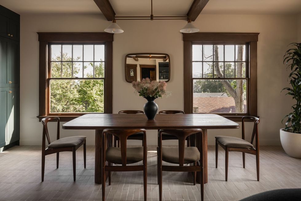 The Eagle Rock home in Los Angeles was beautifully remodeled with European design in mind, taking cues from their travels to France and England. Think romantic wallpapers from House of Hackney, warm paint hues in browns and blush but also a rich earthy greens, classic bead board and moulding, each offering so much inspiration for 2025 walls.