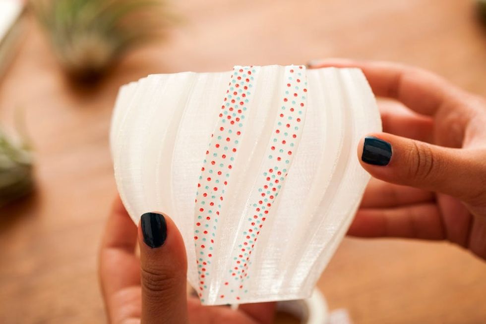 If you’ve been with us for a while, you know we’re pretty batty about washi tape. We’ve used it to decorate doors, desks, and cakes, and now we’re combining washi with 3D printing. Patterns, meet plastic! Oh, and let us also introduce you to air plants! ;)