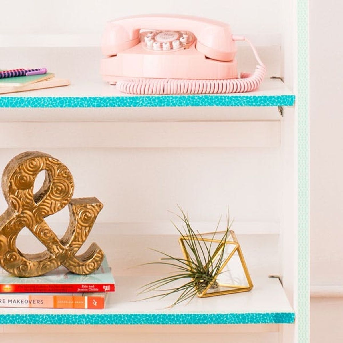 Simply line the edges of each shelf with washi, and add additional stripes as you see fit.