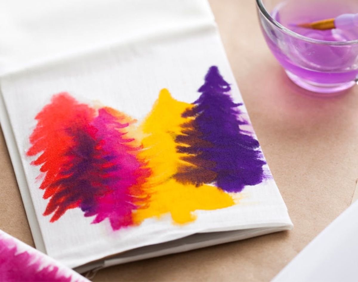 Call it a love affair with all textiles, a love of patterns, and a need to always make everyday errands more fun — whatever you call it, it’s no secret that we have quickly become obsessed with tricking out tea towels. Today’s twist on these kitchen essentials calls on another of our favorite trends, watercolor prints! These watercolor tea towels are super easy to make, pretty to look at, and will add an instant burst of artistic flair to your kitchen. Best of all, you can get a whole kit to make your own set of tea towels for $24.99 right here in the Brit + Co. shop!