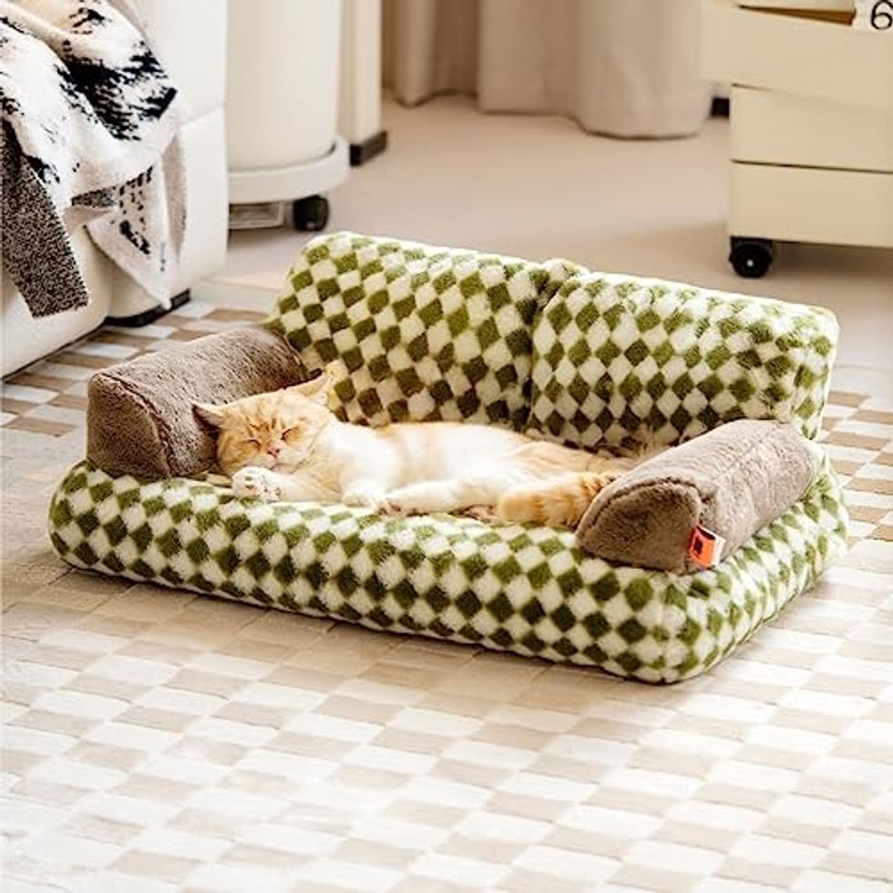 Give your pets a gift that'll help them relax with this ultra-cozy pet bed. The fabric is super soft, and it's plush enough to let them sink in while taking their afternoon nap in the sun. Choose from a few color and pattern options, from green checkerboard to a neutral beige.