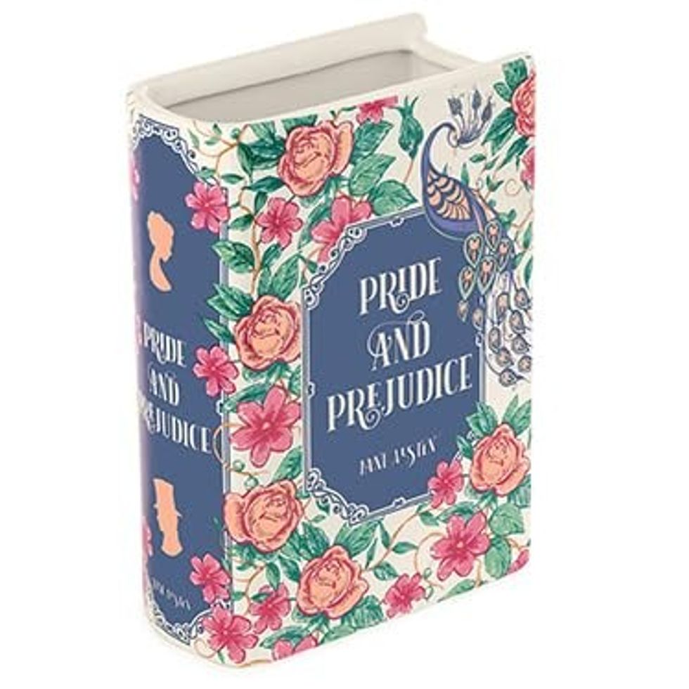 Showcase beautiful bouquets in this ceramic vase replica of one of Jane Austen's classic Regency novels. The vase has a variety of book-inspired details, from the floral illustration to the color scheme, and on the back of the vase, you'll find a quote from the book.