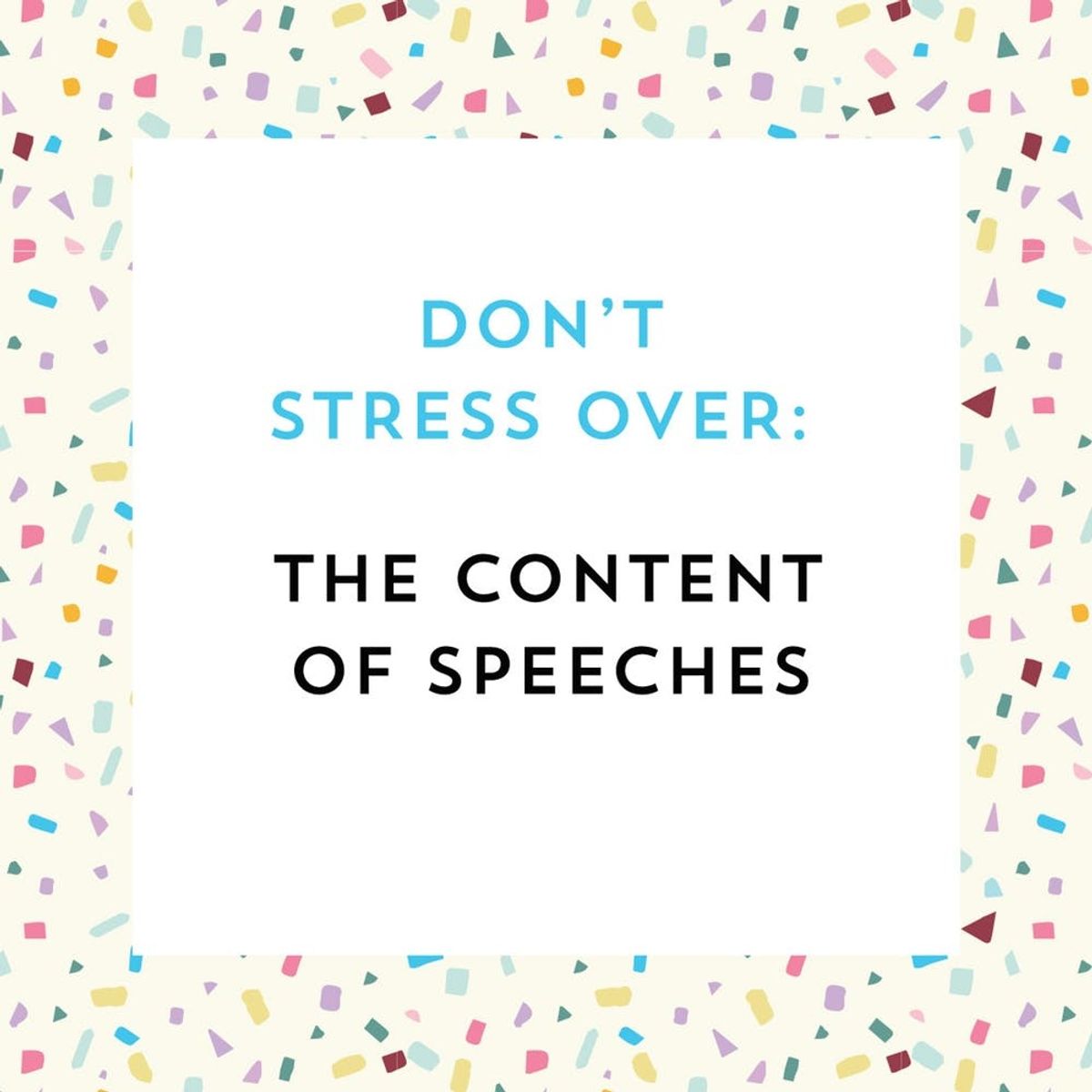 1. The Content of Speeches: Speeches are a huge part of wedding receptions. While they’re often heartfelt, sometimes, brides and grooms can be left feeling anxious at what will come out of their loved ones’ mouths. “The best man may turn it into a roast or your mom may cry hysterically talking about how cute you were as a chunky baby, but it’s the thought that counts,” Erika explained. “You can control who makes a speech, so create a list ahead of time and give it to your DJ (the master of ceremonies) so he/she can control who will and who won’t get the mic.”