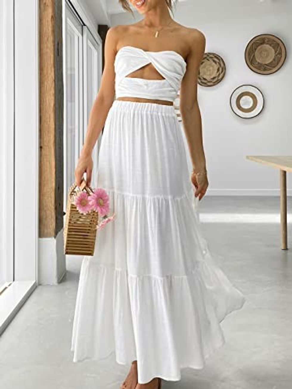 Speaking of a flowy maxi skirt, we found the perfect one. This tiered A-line skirt will pair beautifully with just about everything in your closet. This skirt will be your BFF, especially if you're planning a capsule vacation wardrobe. Choose classic summery white or a fun pop of color to make planning outfits a million times easier. The elastic waistband and thicker fabric make it a comfy and durable yet affordable option that you'll wear for seasons to come.
